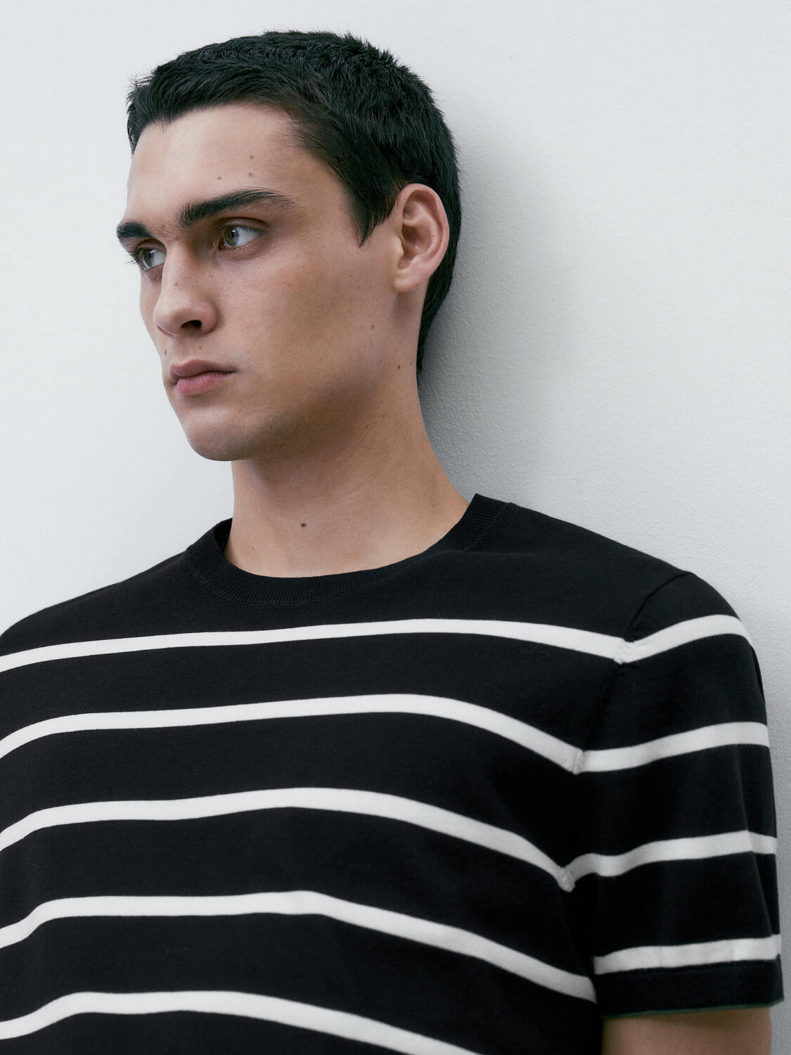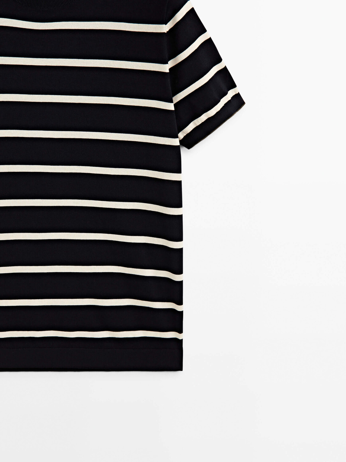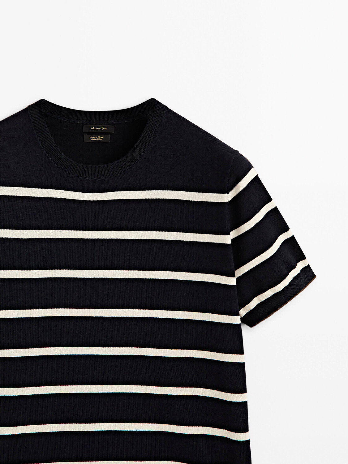Свитер Massimo Dutti Striped Knit Crew Neck, темно-синий/белый