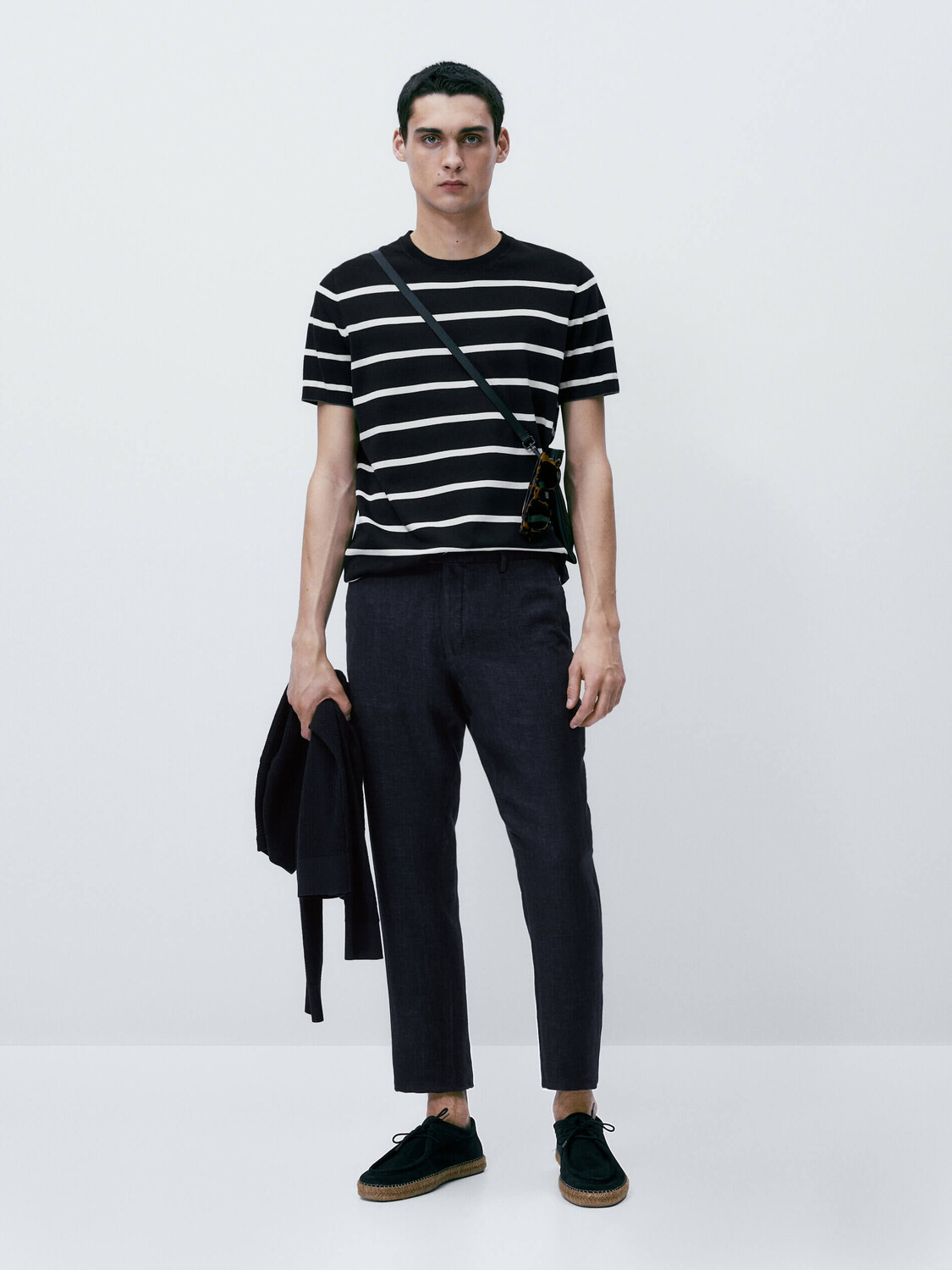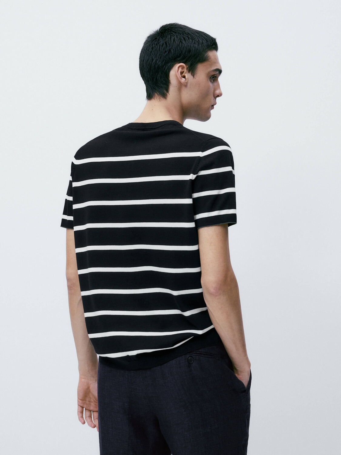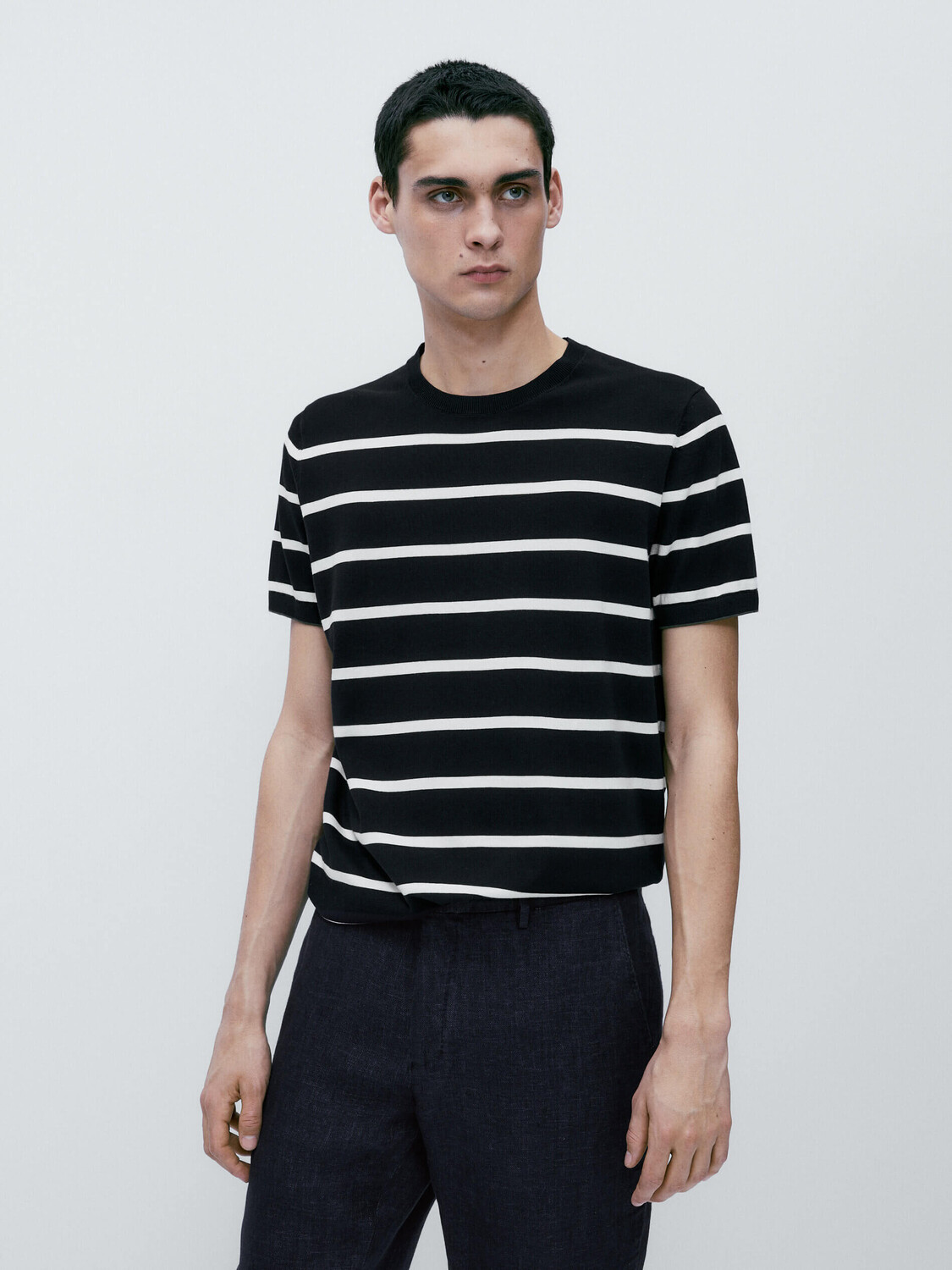 Свитер Massimo Dutti Striped Knit Crew Neck, темно-синий/белый