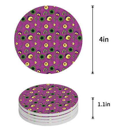 FMSHPON Happy Halloween Set of 8 Round Coaster for Drinks Absorbent Ceramic Stone Coasters Cup Mat with Cork Base for Home Kitchen Room Coffee Table Bar Decor
