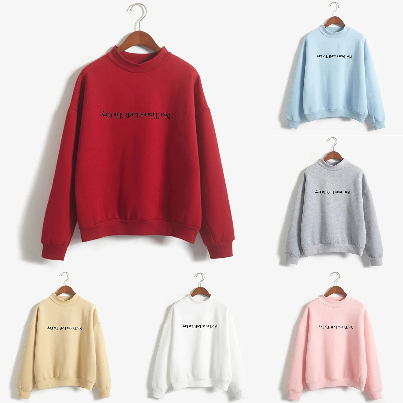 Свитшот женский однотонный свободного покроя с круглым вырезом и длинным рукавом