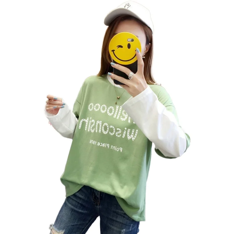 Свитшот женский с круглым вырезом, милый свитшот с надписью в Корейском стиле, с длинным рукавом, в стиле пэчворк, осень 2020