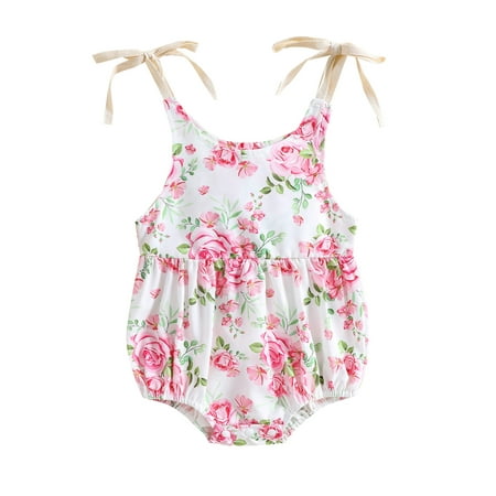 Suanret Infant Girl Summer Jumpsuit Floral Print Bottom Snap Sleeveless Romper Outdoor Wear Pink 3-6 Months