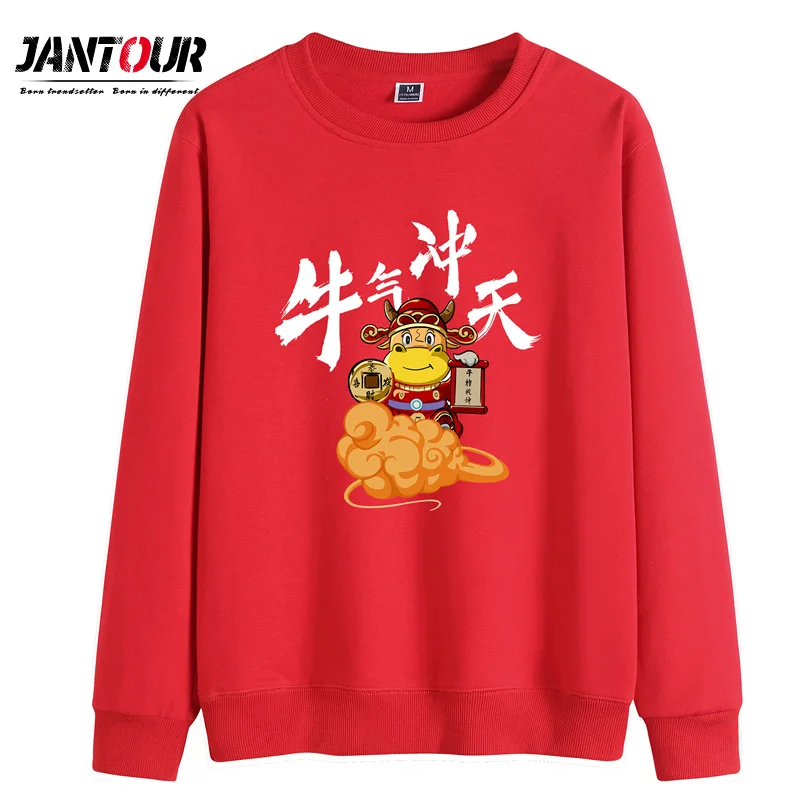 Свитшот мужской оверсайз с круглым вырезом, уличная одежда в китайском стиле с мультяшными животными, Красная толстовка с капюшоном, 2022