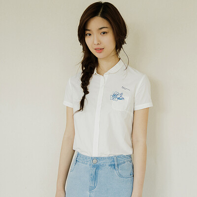 INMAN 2017 summer new simple hit color flowers printed short-sleeved shirt shirt women rice white 1872013019