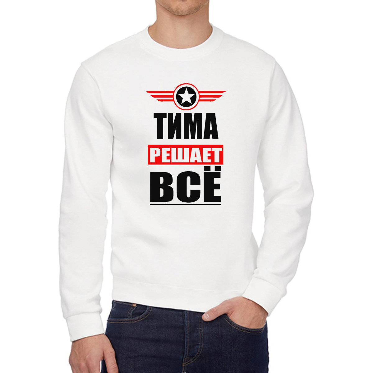 Свитшот мужской CoolPodarok ТИМА решает все белый 58 RU, 58W04736
