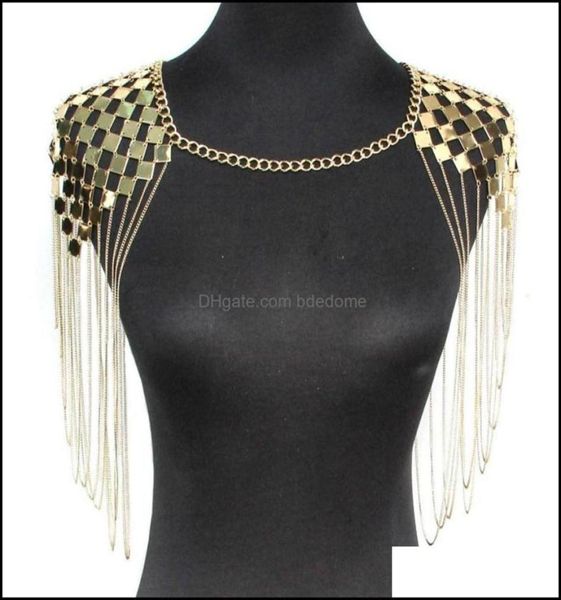 chains necklaces pendants jewelry punk metal statement women collar shoder long chain body accessories ukmoc294f drop deliver3447175, Silver