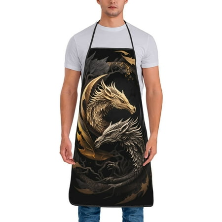 Jgfou Vintage Metal Dragon Print Anti-fouling Apron for Men Women Waterproof Oil-Proof Kitchen Apron with Adjustable Straps Pocket and No-Pill No-Fade Fabric