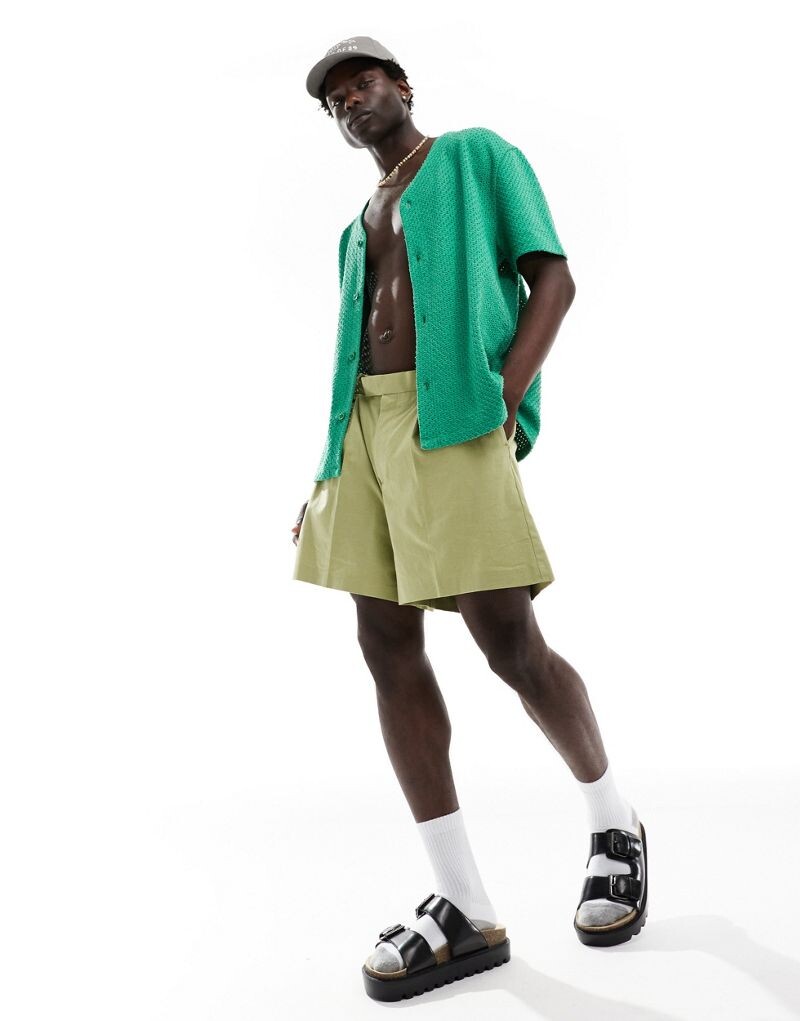 Свободная бейсбольная рубашка зеленого цвета с текстурой ASOS DESIGN