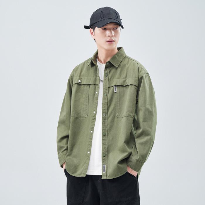 Свободная повседневная куртка-рубашка из плотного стираного хлопка в японском ретро-стиле, цельный воротник в горошек зеленого цвета. 4XL армия зеленый