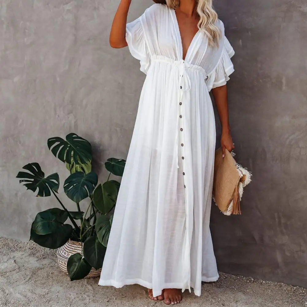 Свободное платье-бикини для женщин 2022, одежда для плавания, накидка, сексуальное пляжное платье с глубоким V-образным вырезом, женское плать...