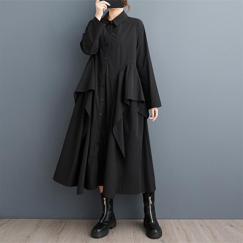 Свободное платье-рубашка большого размера с простым принтом и длинными рукавами One Size чёрный