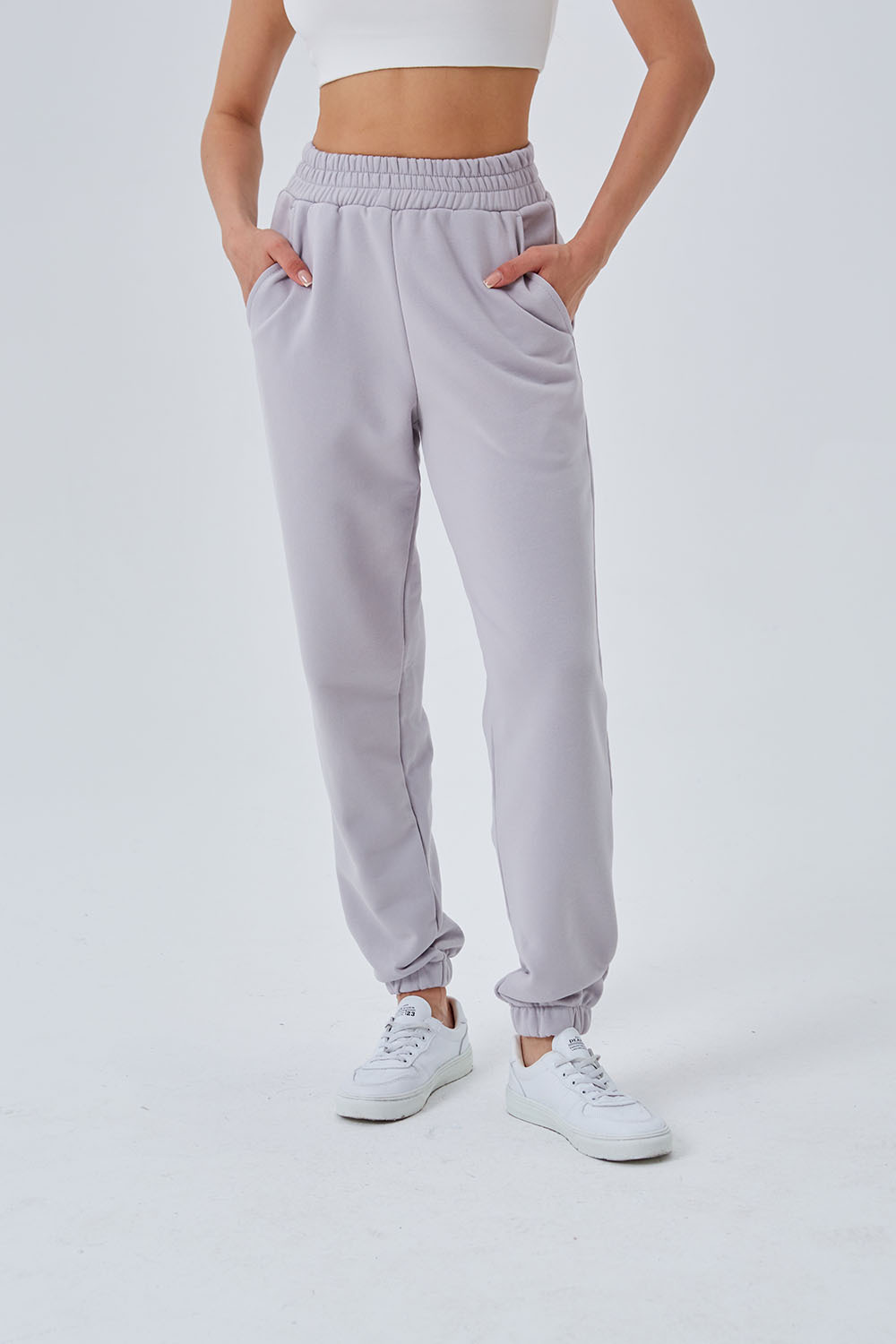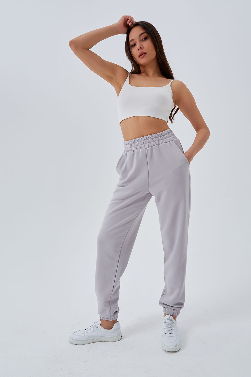 Свободные джоггеры без начеса из премиум футера светло-серого цвета, Светло-серый, Свободные джоггеры без начеса из премиум футера светло-серого цвета