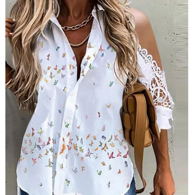 Свободные однобортные рубашки Wepbel, однотонная белая блузка с открытыми плечами и коротким рукавом в виде бабочки