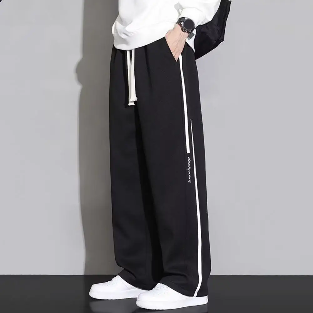 Свободные спортивные брюки с широкими штанинами, мужские спортивные брюки с широкими штанинами и кулиской, мягкие дышащие спортивные удобные брюки для бега