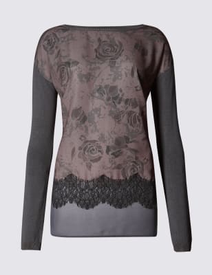 Свободный джемпер "Зимняя роза" с отделкой, Ночная тень