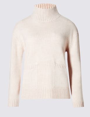Свободный джемпер с высокой горловиной и карманами