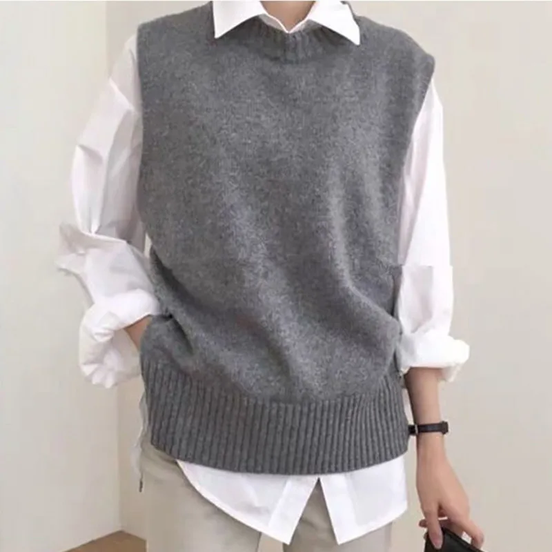 Свободный свитер, джемпер для женщин, женская верхняя одежда, Женский трикотажный жилет оверсайз с круглым вырезом