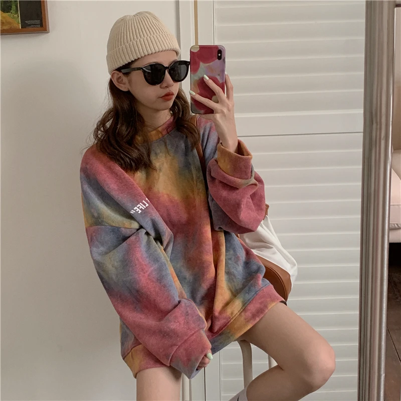 Свободный свитер средней длины с круглым вырезом, окрашенный в галстук
