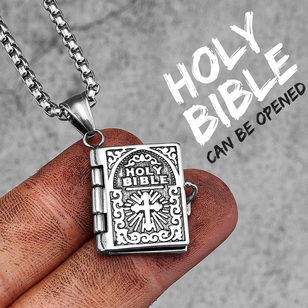 Святая Библия Открывается Нержавеющая Сталь Мужчины Женщины Ожерелья Подвеска Цепочка Панк Модные Модные Ювелирные Изделия Креативность Подарок Оптом Without Chain