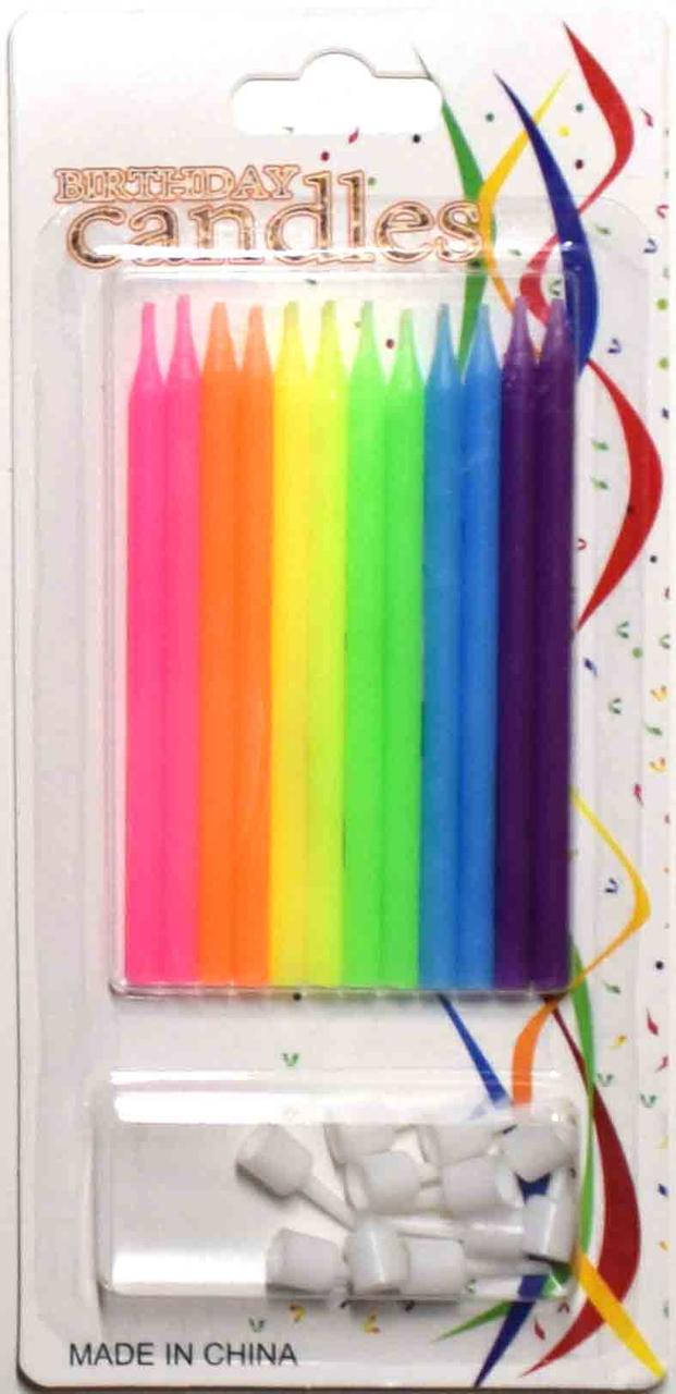 Свічки для торта неонові. Розмір: 9см. В упак: 12шт.з підставками.