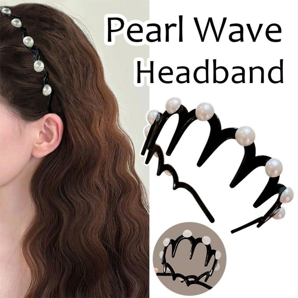 Сгибаемая повязка на голову с жемчужной волной, нескользящая, пушистая, модная, мыть лицо
