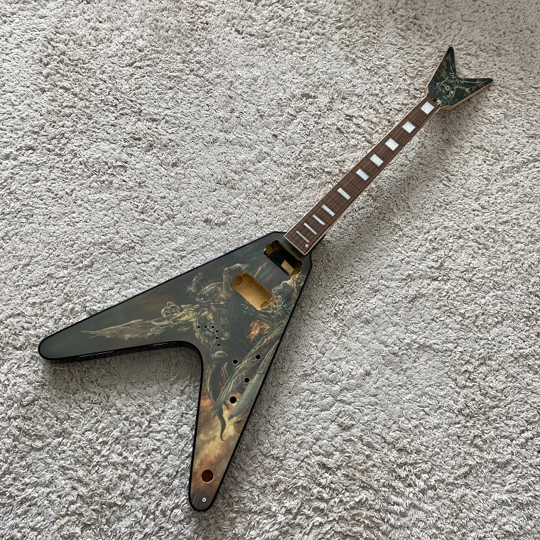 Сделай Сам (не новый) под заказ D V-образная электрическая гитара, красивая верхняя часть с шейной пластиной, дизайн тремоло, скидка