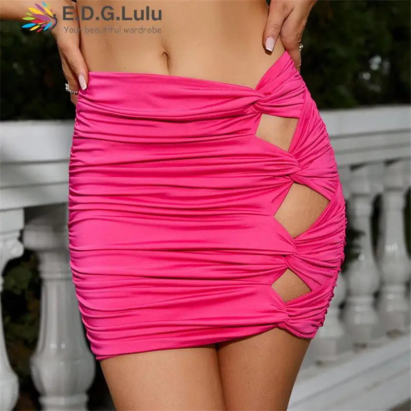 Сексуальная облегающая мини-юбка EDGLuLu с высокой талией, модная летняя женская обтягивающая мини-юбка с разрезами по бокам и рюшами, новинка 2023 года, 0214