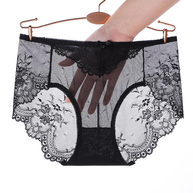 Сексуальное кружевное нижнее белье для женщин больших размеров, бесшовные сетчатые хлопковые трусики с треугольными чашечками на средней талии XL чёрный