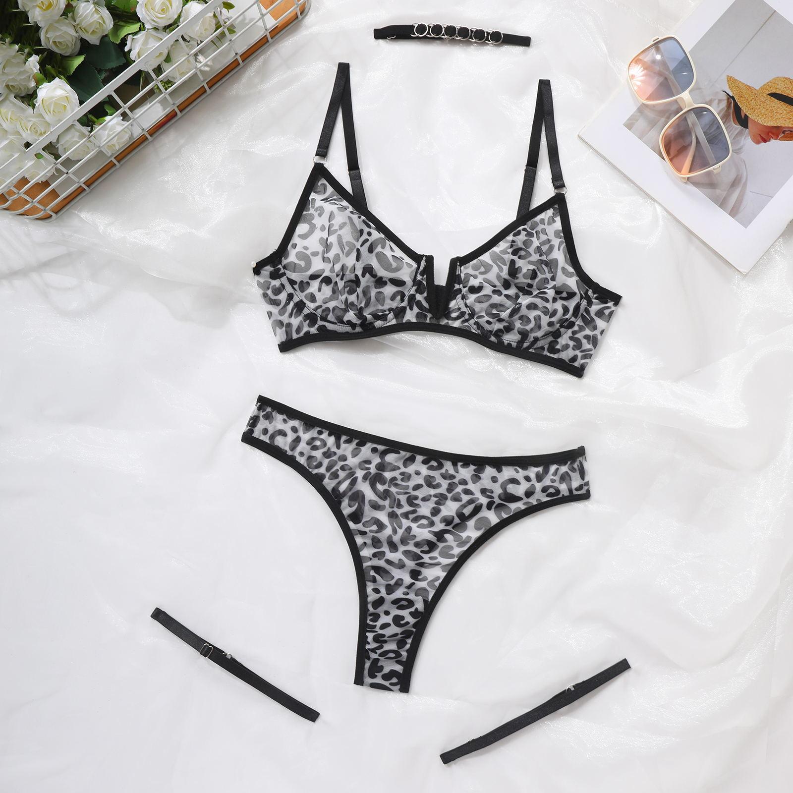 Сексуальное нижнее белье с леопардовым принтом в горошек, сексуальный ультратонкий сетчатый комплект с шейным браслетом S