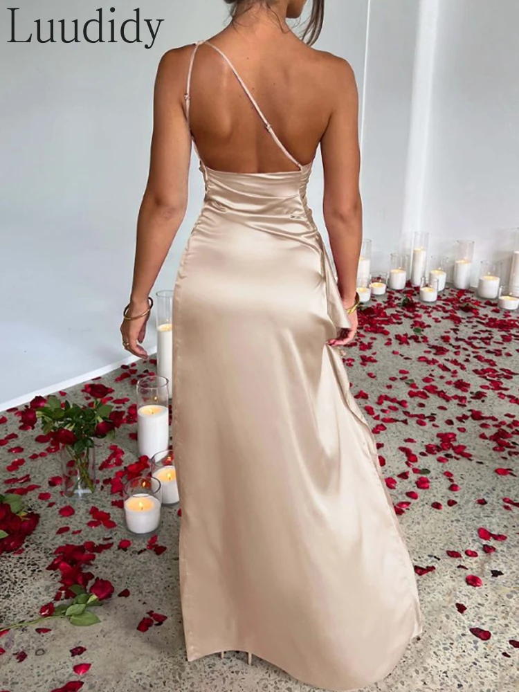 Сексуальное платье на одно плечо с открытой спиной и высоким разрезом