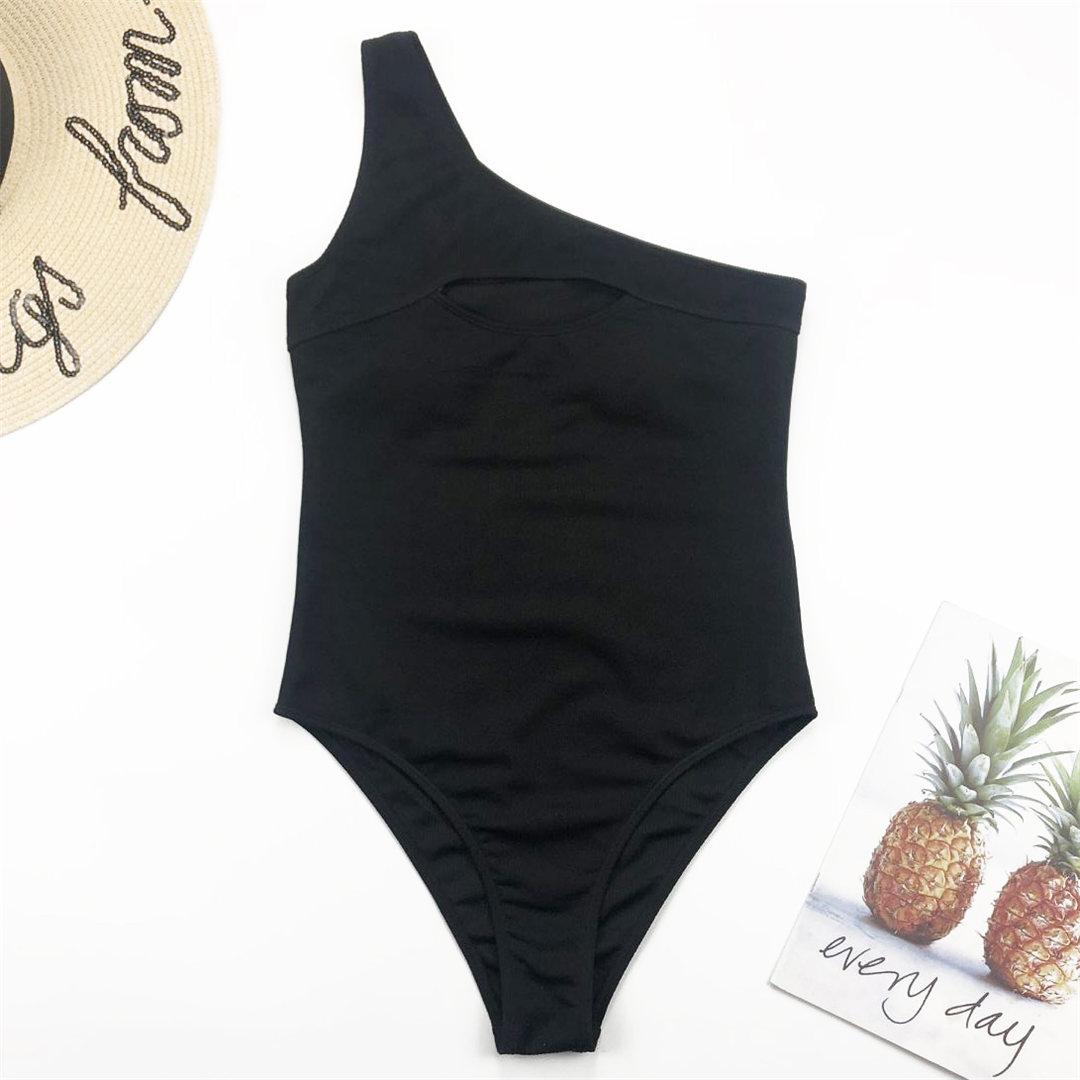 Сексуальное черное ребристое монокини на одно плечо, женские купальники, цельный купальник, женский купальный костюм, купальный костюм для женщин L чёрный