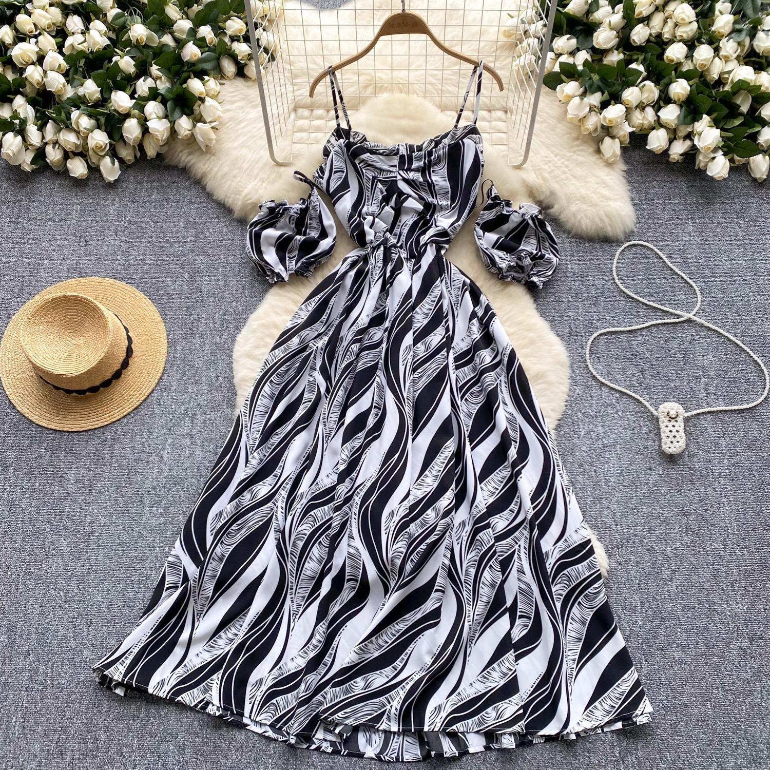 Сексуальное шикарное платье без рукавов с принтом и открытыми плечами, элегантное корейское модное облегающее летнее винтажное милое платье One Size