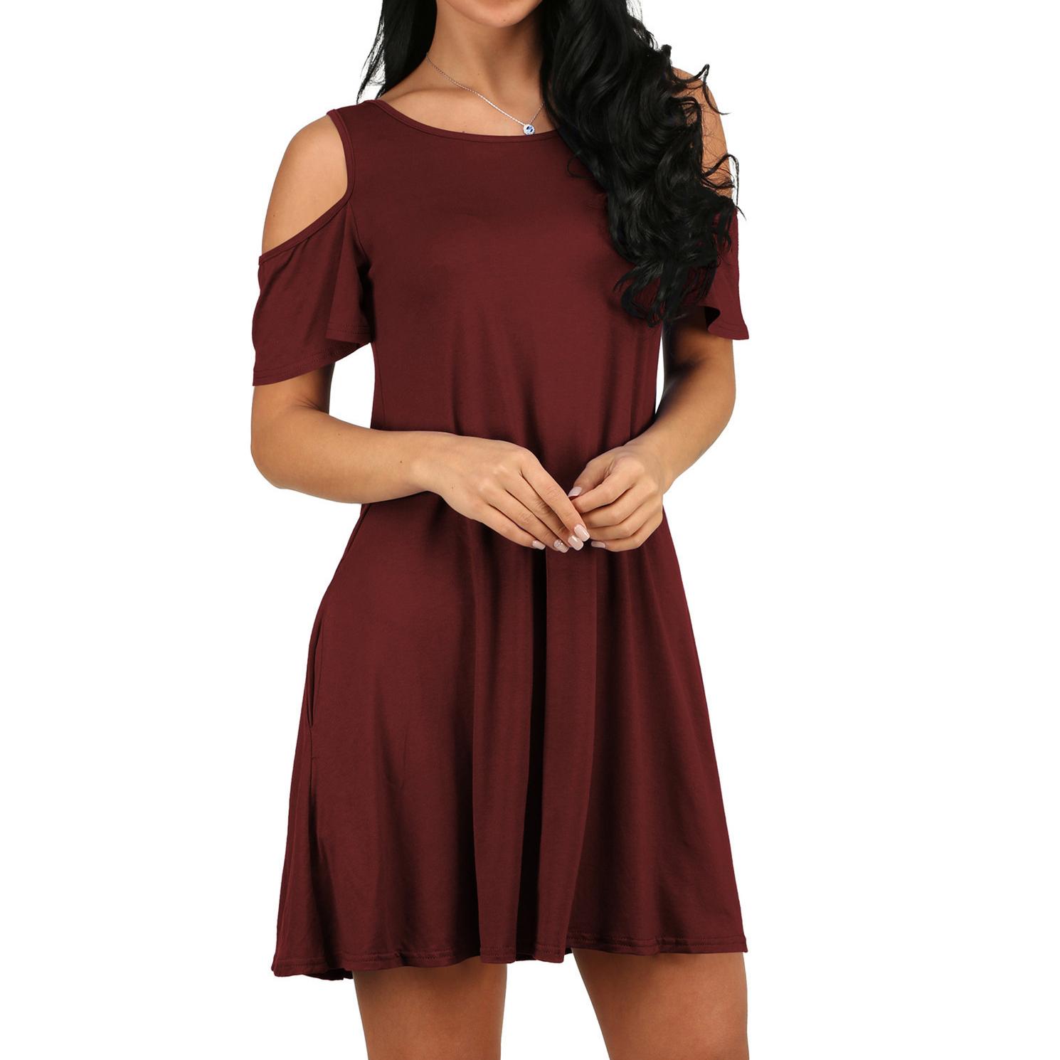 Сексуальное элегантное платье, винтажное свободное платье с открытыми плечами и короткими рукавами, женское однотонное мини-платье, клубное вечернее платье, Vestidos XXL вино красного