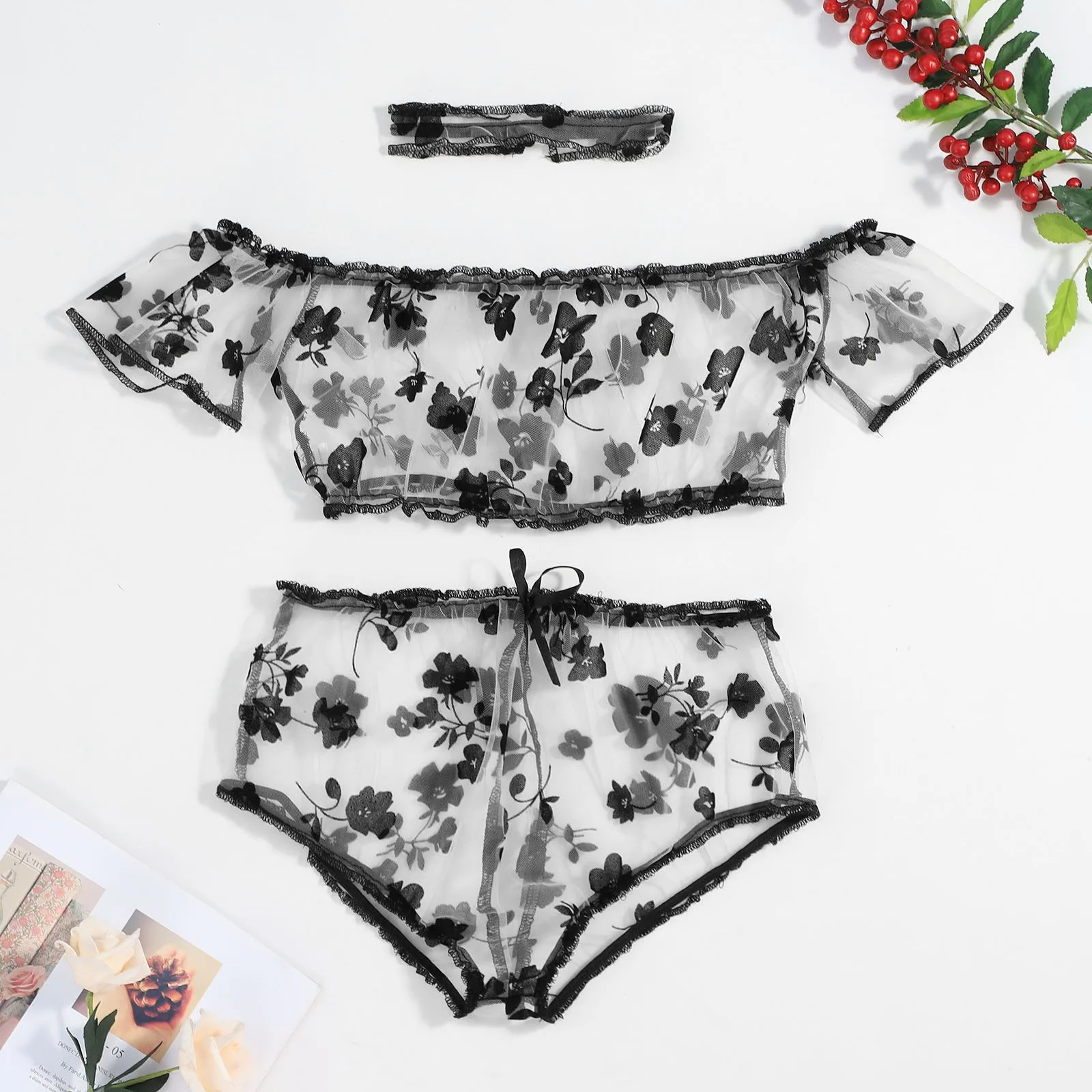 Сексуальное эротическое женское белье с вышивкой, кружевной бант, прозрачный Тонг, комплект, пижама, пижама, нижнее белье, чувственное женск...