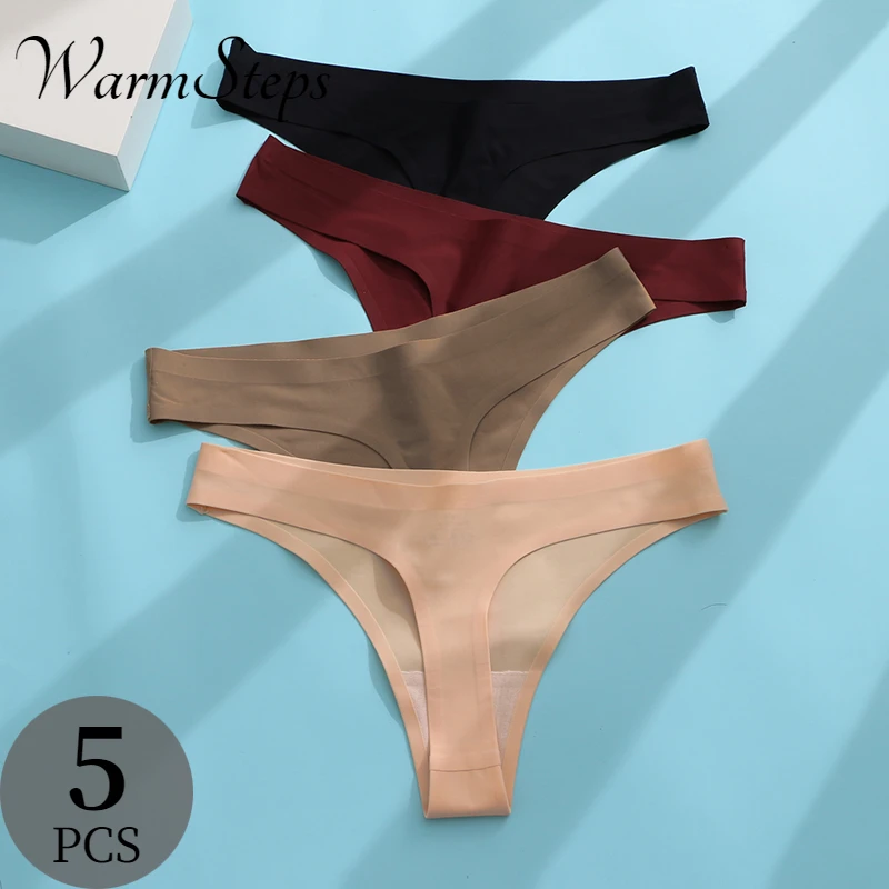 Сексуальные женские трусики WarmSteps 5 шт./компл., дышащее шелковое атласное нижнее белье, удобное бесшовное нижнее белье, ажурные стринги