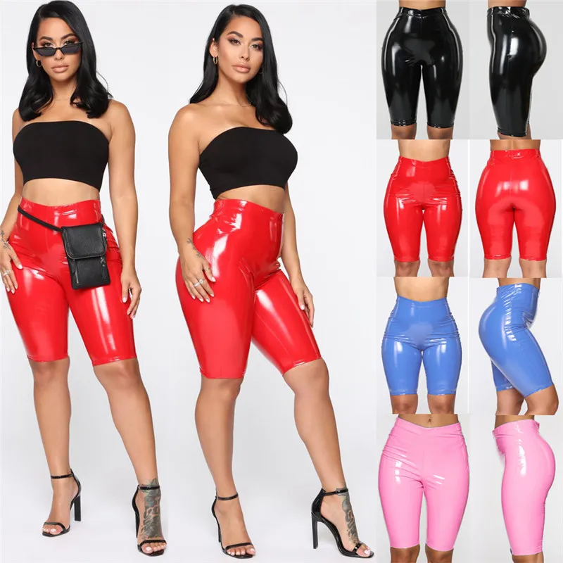 Сексуальные женские шорты из искусственной кожи для подтяжки ягодиц, однотонные короткие брюки в стиле панк с высокой талией и зеркальной поверхностью для женщин, клубная одежда