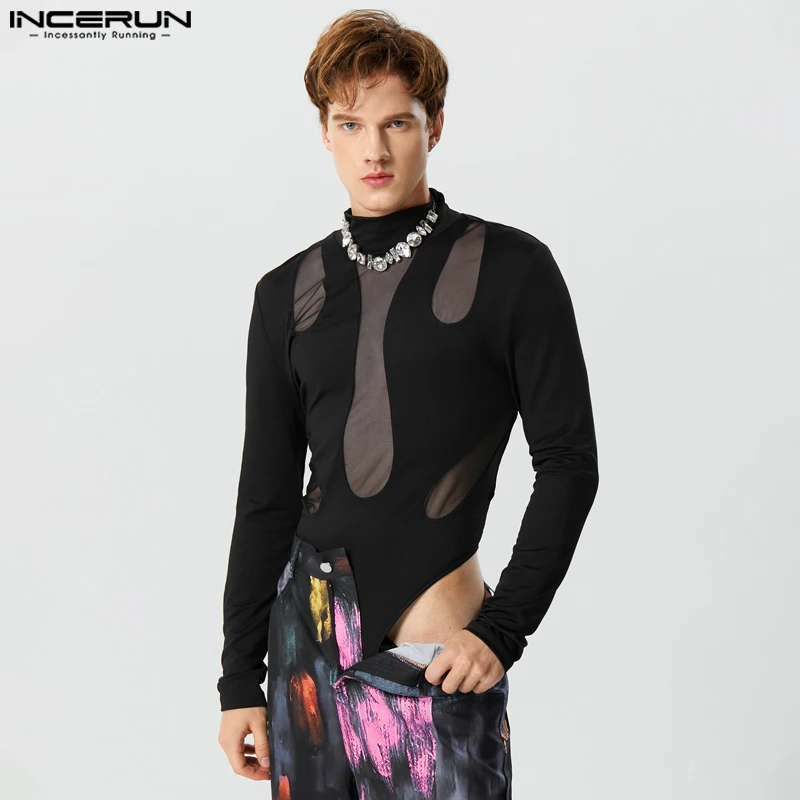 Сексуальные стильные боди INCERUN, новые мужские сетчатые комбинезоны, комбинезоны, домашняя одежда, тонкие треугольные комбинезоны с полувысокой горловиной