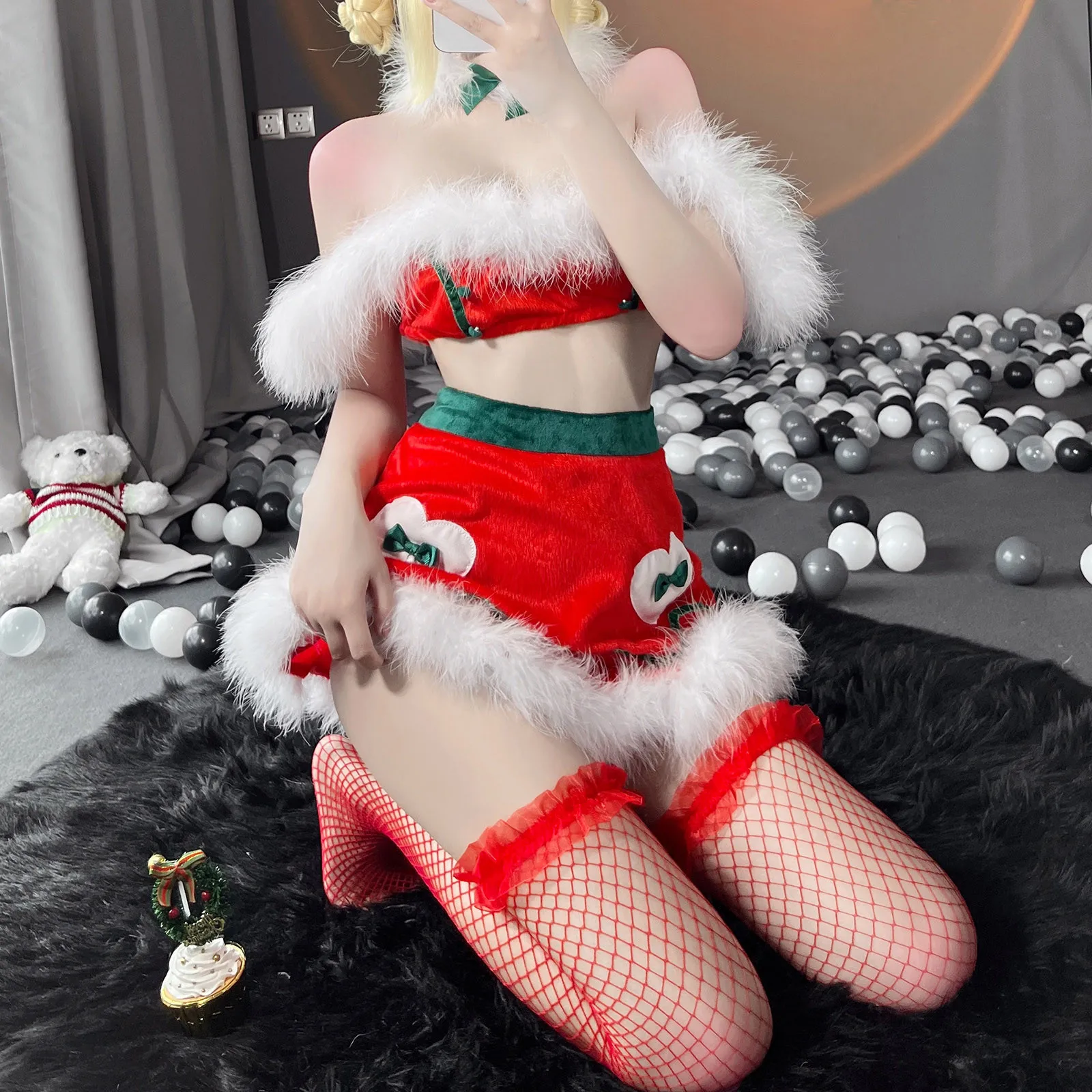 Сексуальный Рождественский комплект нижнего белья, красивое сексуальное женское белье, эротическое красное нижнее белье, Тедди, одежда для сна