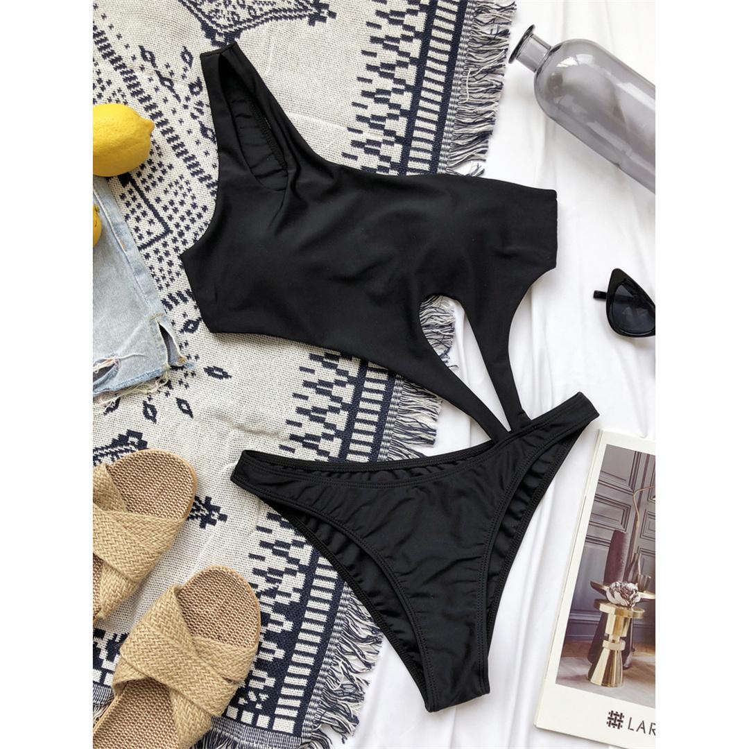 Сексуальный асимметричный цельный купальник на одно плечо с вырезами в полоску, женский купальник с подкладкой, купальный костюм, купальный костюм для леди L чёрный