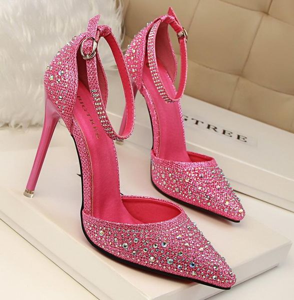 Сексуальный блеск острым носом лодыжки ремень D'Orsay Stietto каблуки партии вечерняя о