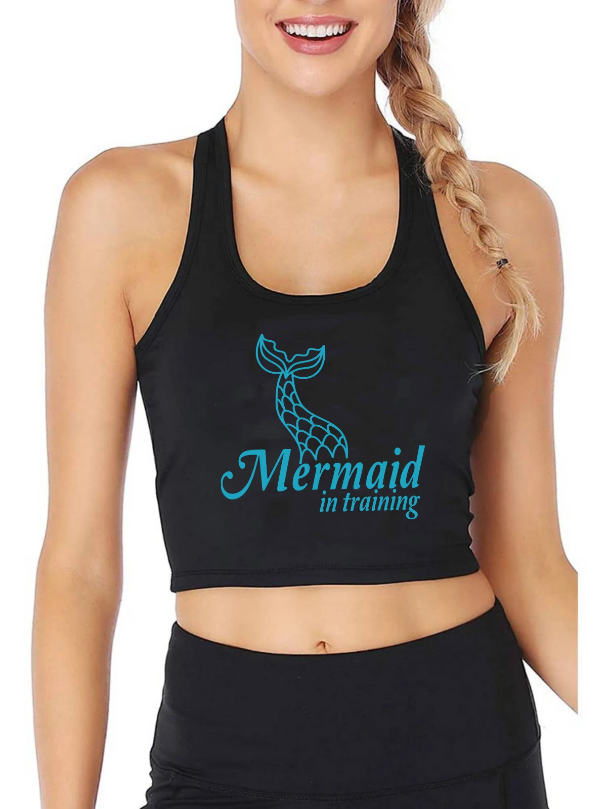 Сексуальный облегающий кроп-Топ Русалка для тренировок с графическим дизайном, женские хлопковые дышащие спортивные майки, настраиваемый Топ