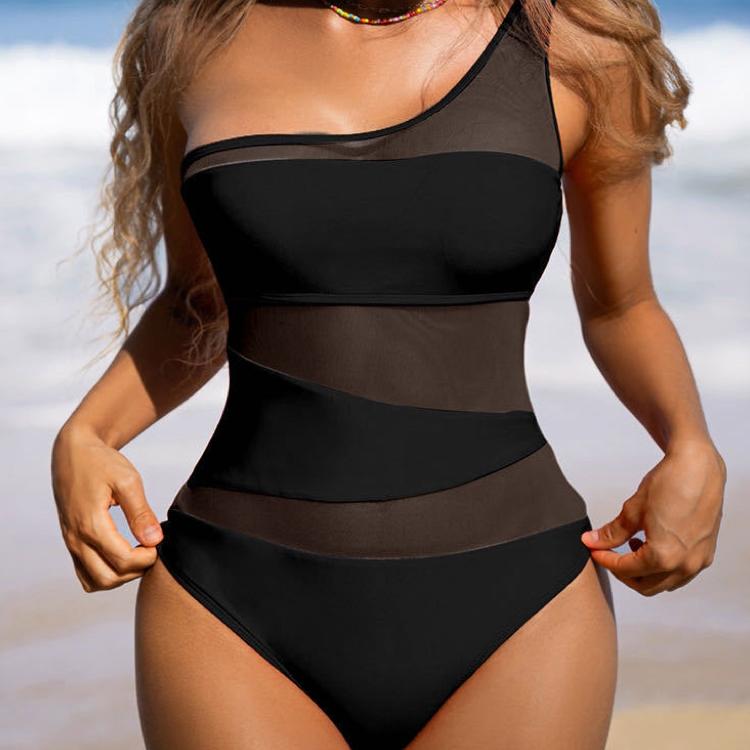 Сексуальный сетчатый лоскутный цельный купальник на одно плечо, женский купальник с вырезом и высоким вырезом, Монокини, бикини с пуш-ап L