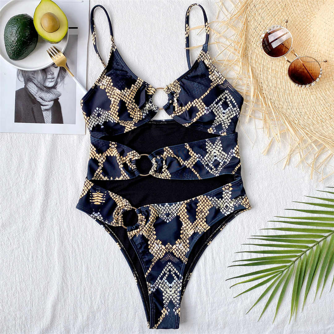 Сексуальный цельный купальник с принтом на животе и вырезом, женский купальник, женские кольца с мягкой подкладкой, купальный костюм, купальный костюм, купальный костюм, La L чёрный