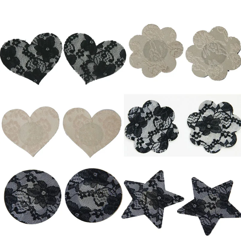 Секс-игрушки 5 шт., черные кружевные подкладки в форме сердца, наклейки на грудь, женское, для девочек, клейкие накладки на соски, одноразовые бюстгальтеры