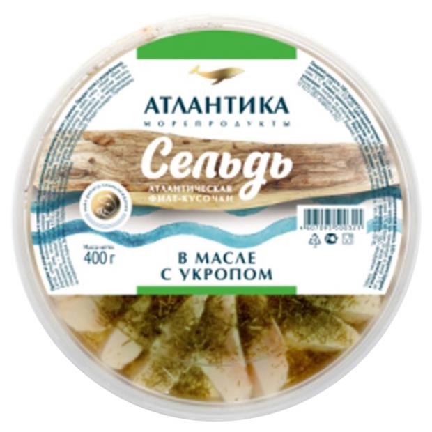 Сельдь слабосоленая филе-кусочки «Атлантика» в масле с укропом Атлантическо-Скандинавская, 400 г