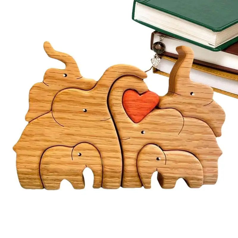Семейное украшение, деревянная статуя слона, серия украшений, семейный слон в форме сердца, украшение из массива дерева, поделки для дома
