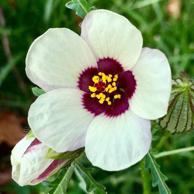 Гибискус тройчатый - однолетнее растение с привлекательными, крупными, кремово-желтыми цветками с коричневым центром. Очень красиво смотрится на каменистых горках, клумбах, рабатках, садовых вазонах и ограждениях.