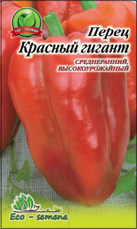 Среднеранний гибрид для выращивания в открытом грунте и в теплицах. Плоды кубовидные, крупные, красные, массой до 300 г, размером 12x10 см, с толщиной стенки 8-12 мм, сочные, сладкие, ароматные. Гигант красный F1- один из самых толстостенных среди сладких перцев. Толщина стенки-до 1,2 см. Универсальное использование.Агротехника:Посев на рассаду в конце февраля - начале марта, пикировка в фазе одного настоящего листа. Рассаду рекомендуется выращивать в течени