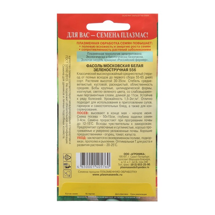 Семена Фасоль Московская белая Зеленостручная 556, 5 г