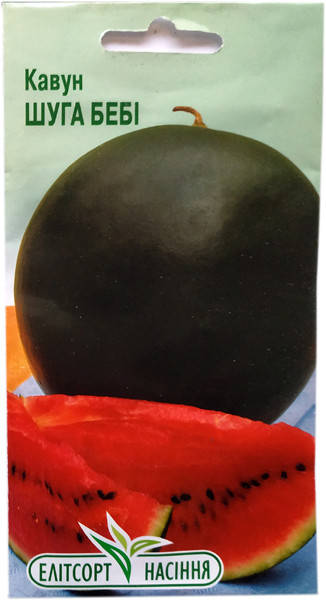 Семена арбуза Шуга Беби - ультраранний урожайный сорт. Плод округлой формы, массой 4-5 кг. Мякоть нежная, ярко-красная, без прожилок, очень сладкая. Дает высокий урожай в условиях засухи. Хорошо транспортируется. Культура теплолюбивая, чрезвычайно требовательна к свету. Требует легких плодородных почв. Высевать семена на глубину 3-5 см. Норма высева - 0,2-0,3 г / м2. При оптимальной температуре прорастания (20-25 ° С), всходы появляются через 5-6 дней после посева.